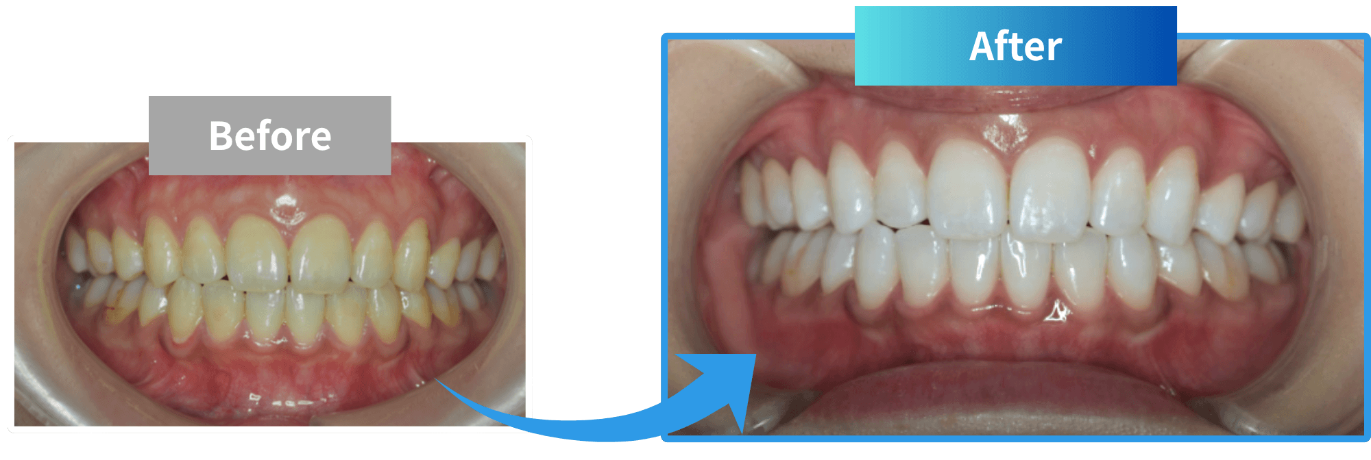 主訴・動機 人前に立つイベントがあるため、それまでに白くしたい。コーヒーが好きで愛飲しているが、全体的に黄ばみが気になる。